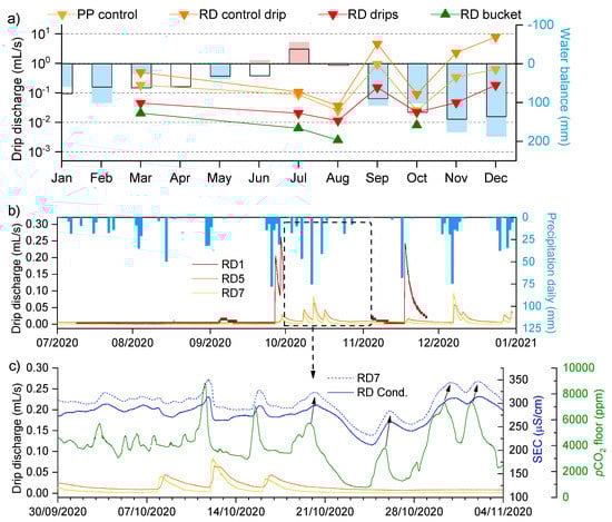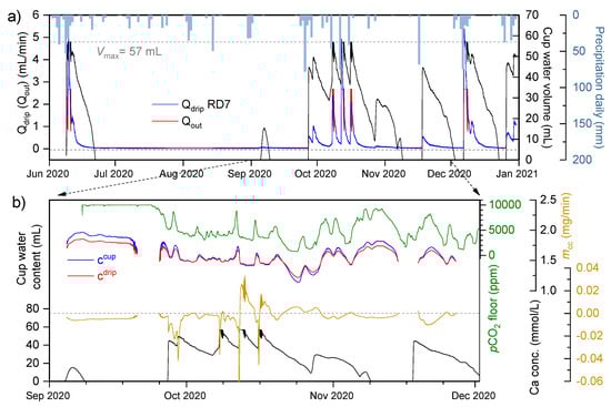 - The degree of dissolution is controlled by both the hydrological conditions of the vadose zone and the conditions of the cave air. While high pCO2 values regularly occur in the late summer (July–September), dripwater discharge is usually lowest at this time. In the winter, this behaviour is reversed; the pCO2 value is low, and the discharge rate is increased. In intermediate periods such as the autumn or when there are rapid short-term changes in the pCO2 of the cave air, the fluctuating pCO2(eq) of the water could be the most important factor for the increased dissolution in the corrosion cups.