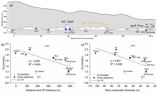 - Baldini, J.U.L.; McDermott, F.; Fairchild, I.J. Spatial Variability in Cave Drip Water Hydrochemistry: Implications for Stalagmite Paleoclimate Records. Chem. Geol. 2006, 235, 390–404. [Google Scholar] [CrossRef]
