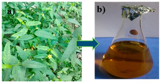 Freshly collected Sida acuta leaves were washed by thorough rinsing with DW to ensure complete removal of unwanted particles and were allowed to dry in the shade. Then, 10 gm of dry S. acuta leaves were boiled in 100 mL of DW at 100 °C for 5 min as shown in Figure 2.