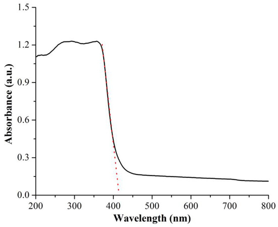 UV–Vis DRS: Figure 5 shows the UV–Vis absorption spectra of the prepared ZnO NPs. ZnO has a strong response to UV light at wavelengths of less than 390 nm but has a low response in the visible light range at wavelengths of more than 390 nm. The spectra display sharp, fundamental absorption in the ultraviolet–visible region with a band-gap absorption edge of 415 nm, which can be assigned to the intrinsic band-gap absorption of ZnO due to the electronic transition from the valance band to the conduction band. According to the equation Eg = hc/λ = 1240/λ (where h is the Planck constant (4.13566743 × 10−15 eV·s), c is the light velocity (3 × 108 m/s) and λ is the wavelength), the energy gap of ZnO NPs is 2.99 eV [23].