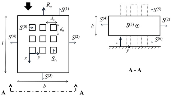 where is the inclination angle of the channel. The area and the outward unit vectors of each section are denoted and , respectively. Variables and are the distributions of velocities and pressure, respectively, for each section m. The operator [ ] is the section-average operator such that [a(m)] is the mean value of a in that section. The unit vectors for the arrangement in Figure 1 are n (1) = (−1, 0, 0), n (2) = (0, +1, 0), n (3) = (+1, 0, 0), n (4) = (0, −1, 0), n (5) = (0, 0, +1), n (6) = (0, 0, −1). Applying the directions of the outward unit vectors, the operational equation for Rx is: