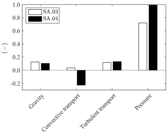 The term is referred to as net convective transport, the term is referred to as the net turbulent transport, the term as the pressure imbalance and the term as the gravity contribution. Figure 8 shows that the pressure imbalance between S1 and S3 is the single major contribution for the drag force. This raises concerns about the accuracy of the estimation of the drag coefficient, given the assumption of the hydrostatic hypothesis.