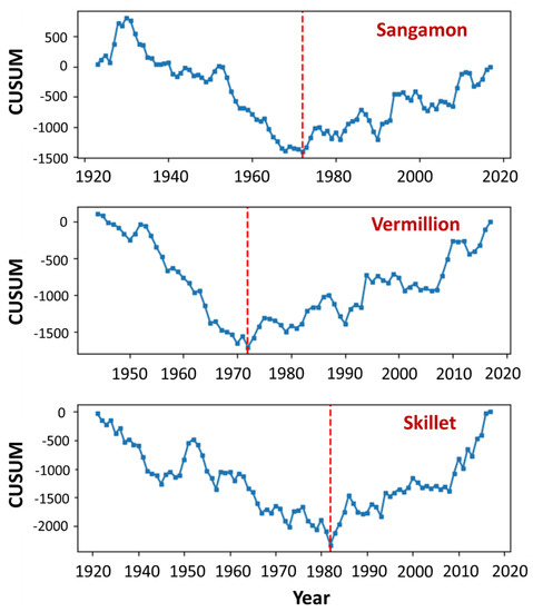 CUMSUM chart for the Sangamon, Vermillion and Skillet watersheds.