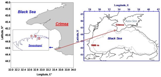 - Gubanov, V.I.; Stelmakh, L.V.; Klimenko, N.P. Complex assessments of the water quality of the Sevastopol seaside (Black Sea). Ecol. Sea 2002, 62, 76–80. (In Russian) [Google Scholar]
