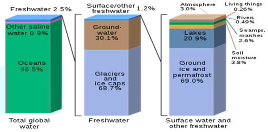 Locations of H2O on earth (Source: Wikipedia, 2021) [].
