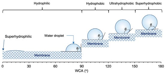 Ultrafiltration (UF) membranes are physical sieving processes that remove solutes based on membrane pore size (5–20 nm) and solute molecular weight (1–100 kDa) [,]. The major benefit of UF is its low operating pressure. Because of the low pressure of UF, space needs are reduced, as are energy consumption and capital expenses [,]. Despite this, because to its comparatively high pore size, UF cannot be used directly to extract heavy metals from wastewater. As a result, complexing agents or membrane modification may be required. The addition of charged groups to the UF membrane may be an option for increasing the rate of heavy metal recovery. Metal ion separation by charged UF membranes is caused by ion repulsion by the fixed charge groups on the membrane skin. This technique attempts to offer a high-water flow and high heavy metal removal efficiency. Nonetheless, research on charged UF for heavy metal removal is in in its early stages. Yao et al. [] produced two novels positively charged UF membranes to improve the performance of the UF membrane in Cr6+ removal: a tertiary amine-based UF membrane (TA membrane) and a quaterized TA membrane. The first membrane was created by combining polyvinylidene fluoride (PVDF) and a tertiary amine-containing block copolymer polymethyl methacrylate-b-dimethylamino-2-ethyl methacrylate. A nonsolvent induced phase separation technique was then used to construct the blended material to the TA membrane. Meanwhile, the second membrane was created by surface quaternization of the TA membrane. The results revealed that these two charged UF membranes were capable of rejecting Cr6+ completely.