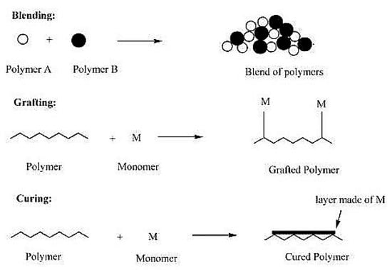 - Bhattacharya, A.; Misra, B.N. Grafting: A versatile means to modify polymers: Techniques, factors and applications. Prog. Polym. Sci. 2004, 29, 767–814. [Google Scholar] [CrossRef]