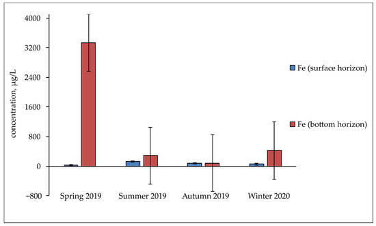 Seasonal and vertical variation of Fe content in Lake Semenovskoe in 2019–2020.