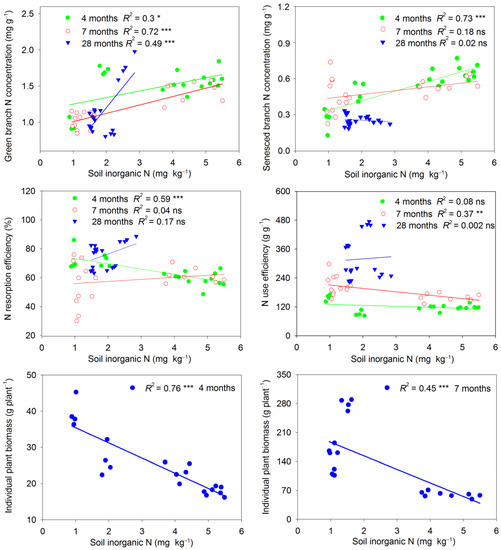 - Yuan, Z.Y.; Chen, H.Y.H. Negative effects of fertilization on plant nutrient resorption. Ecology 2015, 96, 373–380. [Google Scholar] [CrossRef] [PubMed]