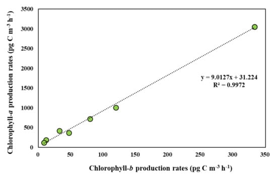 3.5. Photosynthetic Pigment Production Rates