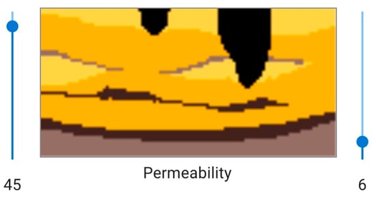 Numerical modeling has been used to explore the role of groundwater, soil moisture dynamics, and overland flow. This work builds on the integrated hydrology model, ParFlow [22]. ParFlow [23] simulates fully coupled unsaturated, saturated and overland flow [19,20,24]. ParFlow has been used widely in prior work to study the effects of heterogeneity on flow, runoff, and land-energy balance [25,26,27,28,29,30]. ParFlow is an open-source software platform [31] which is freely available and runs on a wide range of systems from laptop to supercomputer. Here, we use a specific model built using the ParFlow platform designed to replicate the popular sand tank physical hydrology model. This model, shown in Figure 6, simulates saturated and unsaturated water flow using the two dimensional Richards’ equation and integrated surface flow for the river. When the river is switched to the lake, the surface outflow is turned off and pressures can rise and fall with the lake level. This model runs in real time, in a container, in the application.