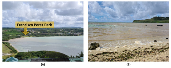 Photos from Pago Bay Outlook (A) and Francisco Perez Park (B) on 23 June 2021, the day after Tropical Depression 06W made landfall on Guam.