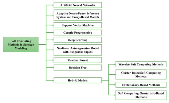 Taxonomy of the review, soft computing methods in seepage modeling.