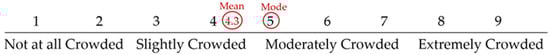 Overall crowding level scale, shown with mean and mode values from survey responses.
