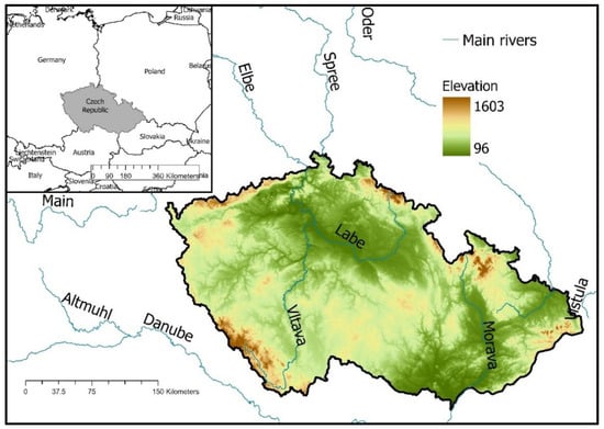 Study area of the Czech Republic with elevation model (CUZK—Zabaged®).