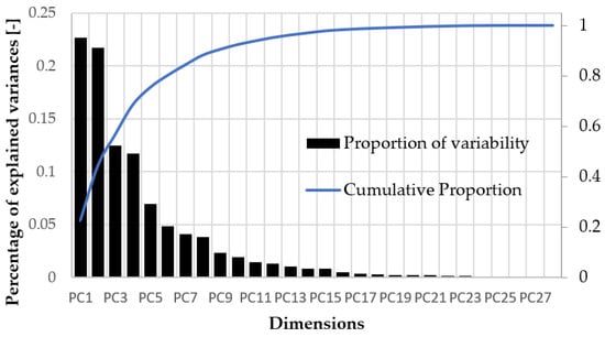 The contribution of individual parameters, especially in the case of the first two substitute variables, does not exceed 9% and 13%, respectively (see Figure 4). PCA analysis did not provide a clear choice of explanatory variables (see Figure 4).