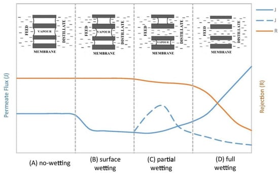 - Rezaei, M.; Warsinger, D.M.; Duke, M.C.; Matsuura, T.; Samhaber, W.M. Wetting phenomena in membrane distillation: Mechanisms, reversal, and prevention. Water Res. 2018, 139, 329–352. [Google Scholar] [CrossRef]