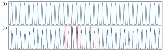 Filling in the gaps by extracting the seasonal component. (1) seasonal component of time-series; (2) reconstructed time-series. The red boxes show the reconstructed sections of the time series.