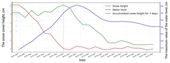 River floods can be considered as a crucial type of dangerous event. The damage caused by a river flood may reach hundreds of thousands of dollars [,]. Moreover, natural hazards take lives and affect a large number of people every year []. Because it is vital to predicting such floods successfully, there are a lot of scientific works dedicated to flooding operational modeling based on various solutions [].