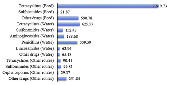 - Van Boeckel, T.P.; Brower, C.; Gilbert, M.; Grenfell, B.T.; Levin, S.A.; Robinson, T.P.; Teillant, A.; Laxminarayan, R. Global trends in antimicrobial use in food animals. Proc. Natl. Acad. Sci. USA 2015, 112, 5649–5654. [Google Scholar] [CrossRef] [Green Version]