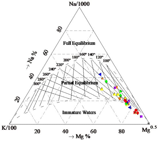 Na-K-Mg ternary diagram of the sampled thermal springs.