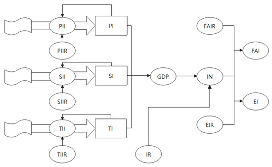 Therefore, investment in environmental conservation should be increased concurrently with economic development. A focus on economic development only while ignoring environmental pollution is not only inconsistent with the concept of green ecological development but will also hinder the sustainable advancement of the economy. The state variables in the economic subsystem are GDP and total industrial water utilization. Meanwhile, the rate variables are the increases in GDP and industrial water utilization, whereas the remaining variables are auxiliary variables [22].