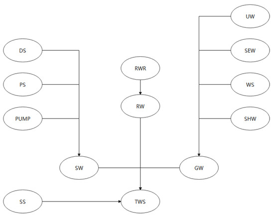 The structure of the water resource supply subsystem is illustrated in Figure 6 and the variables are shown in Table 3.