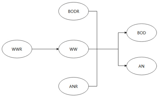 The structure of the water environment subsystem is illustrated in Figure 8, and the variables are shown in Table 5.