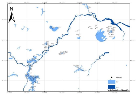 The lower reaches of the Yangtze River comprise the area from Jiangxi to Shanghai. The region includes Jiangxi, Anhui, Jiangsu, Zhejiang, and Shanghai and has a drainage area of about 120,000 km2. The terrain is flat and the altitudes are mostly below 50 m. The area is mainly composed of plains and hills and includes the Jiangsu Anhui River plain, the Poyang Lake Plain, and the Yangtze River delta plain. The lower reaches of the Yangtze River have a subtropical monsoon climate, with an average annual temperature of 13–18 °C and four distinct seasons. The summers are hot, humid, and rainy; the winters are cold, dry, and less rainy. There is abundant rainfall in the basin, with an average annual rainfall of about 1100 mm, but the rainfall mainly occurs from April to October. Many lakes are present in the plain region of the lower reaches of the Yangtze River, most of which are shallow freshwater lakes, making this one of the most densely distributed freshwater lake areas in China [37]. In the plain area of the lower reaches of the Yangtze River, there are 233 lakes with areas of greater than 1 km2, 13 lakes with areas of greater than 100 km2, and two lakes with areas of greater than 1000 km2. Poyang Lake, Taihu Lake, and Chaohu Lake are located in this area. The lakes in the lower reaches of the Yangtze River represent rich freshwater resources, but the degree of eutrophication is also very serious and represents an urgent ecological and environmental problem that requires resolution [38]. The development of agriculture has led to an increased flow of pollutants such as pesticides and chemical fertilizers into the lakes with rainfall. Furthermore, increased discharge of domestic sewage and industrial wastewaters, in addition to pollution caused by lake aquaculture, has accelerated lake eutrophication, leading to a decline in the lake water ecosystem functions in the lower reaches of the Yangtze River. Moreover, the ecosystems and biodiversity within these lakes have become seriously affected. In addition, the water quality of the lakes in this area has been seriously affected, thereby critically threatening the drinking water sources of the residents of the region, resulting in water resource shortages, and even affecting the health of residents [39].