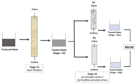 - Al-Kaabi, M.A.; Al-Ghouti, M.A.; Ashfaq, M.Y.; Ahmed, T.; Zouari, N. An integrated approach for produced water treatment using microemulsions modified activated carbon. J. Water Process. Eng. 2019, 31, 100830. [Google Scholar] [CrossRef]