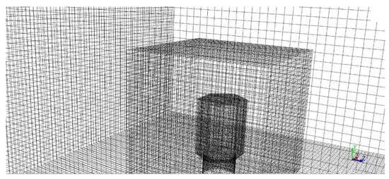 The computational grid is shown in Figure 6. The grid is non−uniform, with a refinement near the inlet of the water withdrawal pipe. The smallest grid spacing is 0.02 m, the largest 0.2 m. To select a working mesh, mesh sensitivity tests were performed. The total dimension of the mesh used for the calculations is about 570,000 nodes.