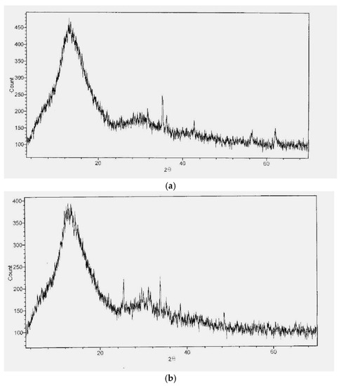 Results of XRD analysis of the dust before (a) and after (b) ISV treatment.