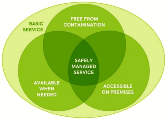 Furthermore, household access to sanitation facilities was in line with JMP [46] for the investigated households. As defined by UNICEF and WHO [46], Table 8 illustrates the five access service levels for adequate sanitation facilities, outlining the specific characteristics for each to provide a more in-depth understanding.