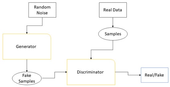 The generator network produces new synthetic samples using a random noise vector, as shown in Figure 2, while the discriminator aims to differentiate between the fake and real data. As a result, the GAN system is trained while the generator builds more realistic fake data, and the discriminator network attempts to discern between real and false (i.e., generated) data.