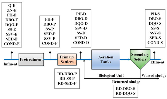 During recent decades, increased awareness about the negative impact of eutrophication on the quality of water bodies and advances in environmental technology have given rise to more stringent wastewater treatment requirements and regulations [1,2]. Currently, proper monitoring of wastewater plants is one of the main challenges for water utilities worldwide, with significant environmental and cost-saving implications. Measurement and monitoring of effluent qualities are one of most important aspects. Because of the extreme working conditions, the highly complex processes of microbial growth and large measurement delays, the measurement of effluent quality parameters, such as BOD5 (biochemical oxygen demand for 5 days), COD (chemical oxygen demand), and TN (total nitrogen) is usually difficult [2,3]. To describe the physical, chemical, and biological reactions in wastewater, many differential equations are required, which discourages process model construction. Because prior knowledge is not required, data-driven soft-sensor technology has become the most commonly-used method to measure the quality-related variables of biological treatment processes in the wastewater treatment. Essentially, data-driven soft-sensor technology aims to construct a certain mathematical model to describe the relationship between input and output variables, to predict hard-to-measure variables without necessarily resorting to an accurate mechanism model [4].