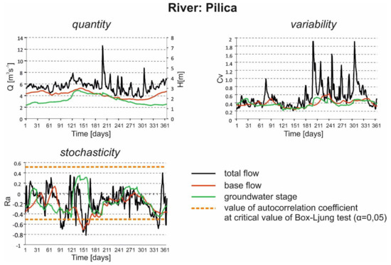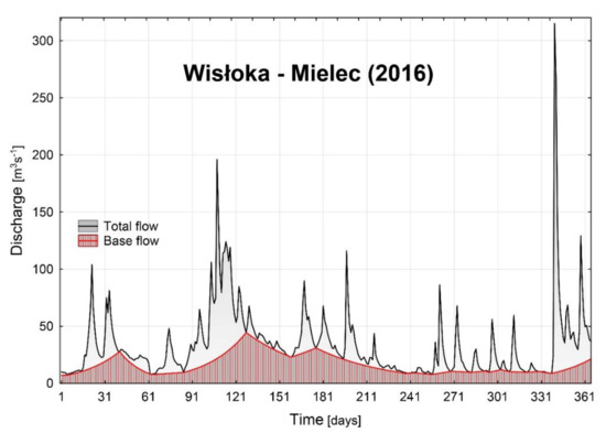 - Rotnicka, J. Theoretical foundations for separating hydrological periods and river regime analysis on the example of the Prosna River. Pr. Kom. Geogr. Geol. Ptpn 1977, XVIII, 1–94. (In Polish) [Google Scholar]