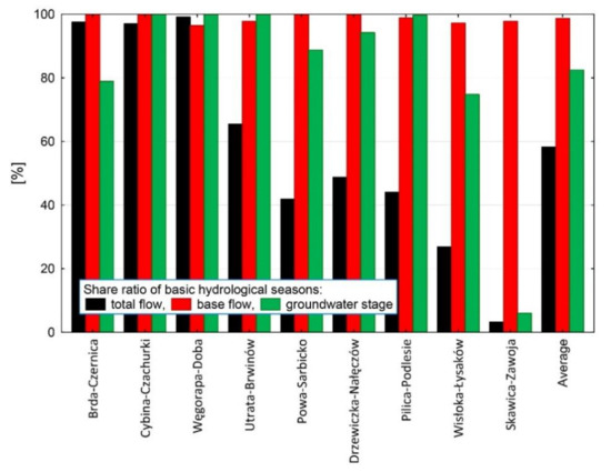 Tomalski, P.; Tomaszewski, E.; Wrzesiński, D.; Sobkowiak, L. Relationships of Hydrological Seasons in Rivers and Groundwaters in Selected Catchments in Poland. Water 2021, 13, 250. https://doi.org/10.3390/w13030250
