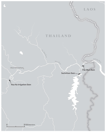 - Foran, T.; Manorom, K. Pak Mun Dam: Perpetually contested. In Contested Waterscapes in the Mekong Region: Hydropower, Livelihoods and Governance; Molle, F., Foran, T., Käkönen, M., Eds.; Earthscan: London, UK, 2009; pp. 55–80. [Google Scholar]