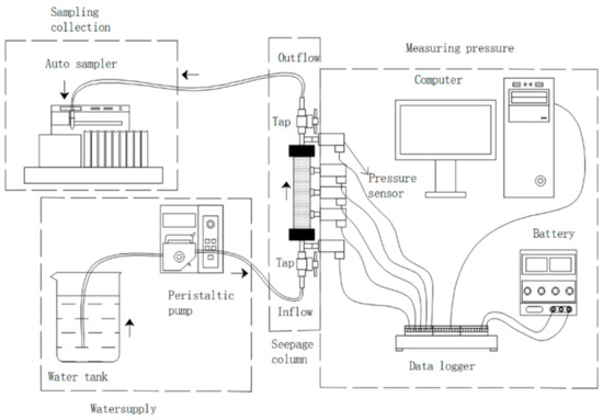 14], such as with pore throat blockage. The median particle size of the infiltration medium is large, and the smaller the specific surface area, the easier the iron hydroxide colloid enters the sand column through interception. In the coarse sand experiment column, the iron hydroxide colloidal particles easily entered the inside of the column through the surface layer to form a clog. Therefore, the permeability changes at 3–16 cm of media were similar to those of the whole coarse sand column.