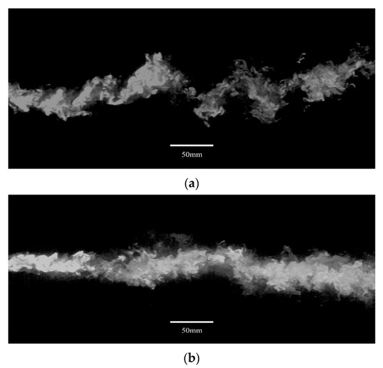 Figure 11. Instantaneous PLIF images of (a) case N0 without net; (b) case N5 with net.