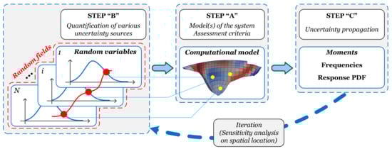 - Step B: Quantify the uncertainty in the input parameters, , either in the form of random variables (correlated or uncorrelated) or random fields.