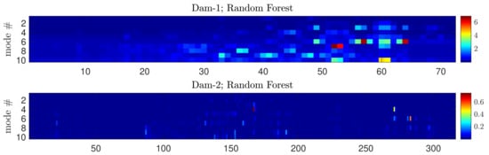 Estimation of variable importance using random forest for two dams and 10 modes.