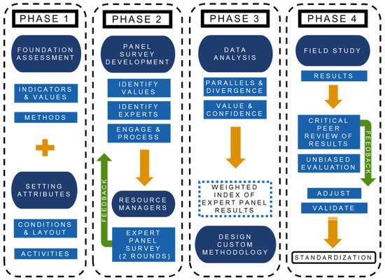Conceptual diagram of a visitor monitoring process that can be applied to aquatic protected areas. This process is adopted from the work of Burns et al. [107] (2020), which outlines the process as it can be applied to National Marine Sanctuary sites within the U.S. The process covers four phases, from foundational assessment to application to field study and data collection. Critically, the incorporation of expert panel input and analysis of potential methods is included with the option to generate feedback and adapt to changing visitor monitoring demands.