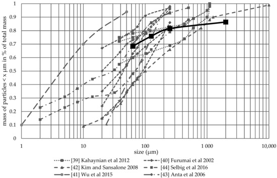 Comparison of particle size distribution. All cited studies investigated the particle size distribution of road runoff.