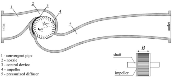 where Q is the design flow rate and λmax is the maximum inlet angle, equal to 110° as shown in Figure 1. A more extended discussion of the turbine design and management criteria can be found in [13,14,16].