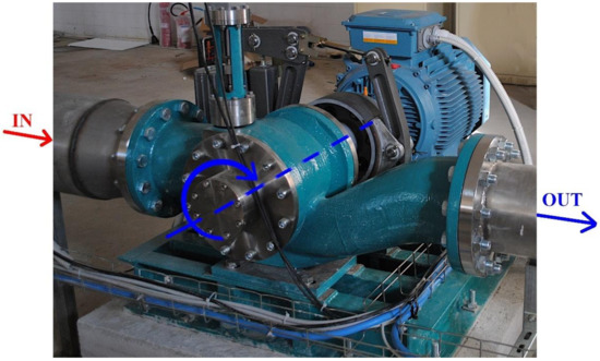 It is well known that most of the potential energy owned by the water in its catchment sites, such as springs, wells, and natural or artificial basins, is usually dissipated in the water distribution networks (WDN), either along the pipes during transport or in valves for discharge and/or pressure regulation. In this context, energy recovery from mini-hydro turbines with positive outlet pressure installed in transport and distribution water pipes has recently gained great attention in the scientific literature [1], especially when the device can supply the same function as the valves [1,2]. These turbines are usually pumps used as turbines (PATs) [1,3,4], bulb type turbines [5,6,7], or crossflow type turbines [8,9,10,11,12], such as the power recovery system (PRS) [13,14,15,16]. The main advantage of the PRS turbine, with respect to the other ones, is that the regulation of its characteristic curve can be easily done by means of a mobile flap, which can change the inlet area of the impeller, still saving a good efficiency within a large range of head jumps and flow rates.