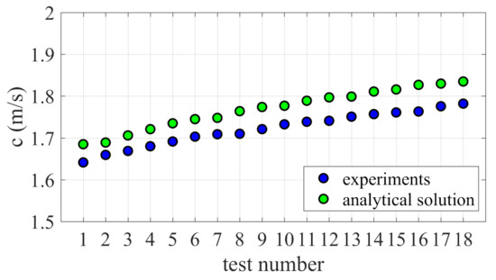 c was deduced as the ratio between the distance between the two wave gauges and the time interval related to the occurrence of the maximum surface elevations at wg1 and wg2. To support this analysis, the experimental wave celerity was compared with the theoretical one calculated by Equation (