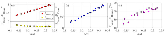 Figure 4c,d), which is proportional to the horizontal inertia component. The effect of the drag force, proportional to the horizontal velocity (see
