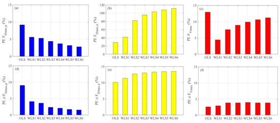 , it can be noticed that the maximum PE refers to the OLS approach with a value equal 12.9%, while the minimum PE of 4.4% is related to WLS1. Paying attention to the values of