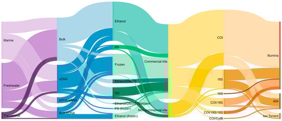 - Van der Loos, L.M.; Nijland, R. Biases in Bulk: DNA Metabarcoding of Marine Communities and the Methodology Involved. Mol. Ecol. 2020. [Google Scholar] [CrossRef] [PubMed]